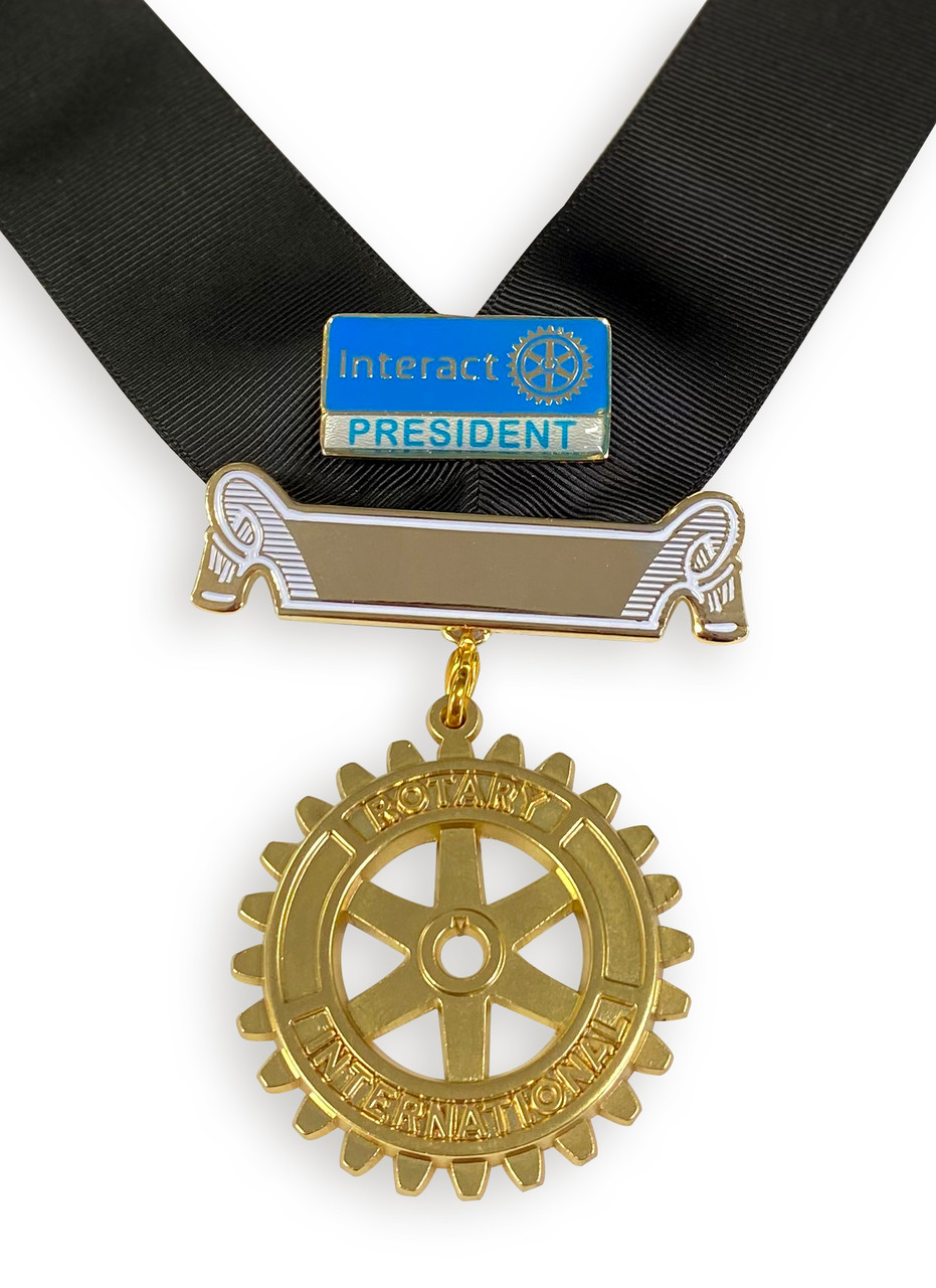The collar features a durable metal bar for engraving your club's name, symbolizing pride and identity. An iconic Rotary wheel hangs at the base.